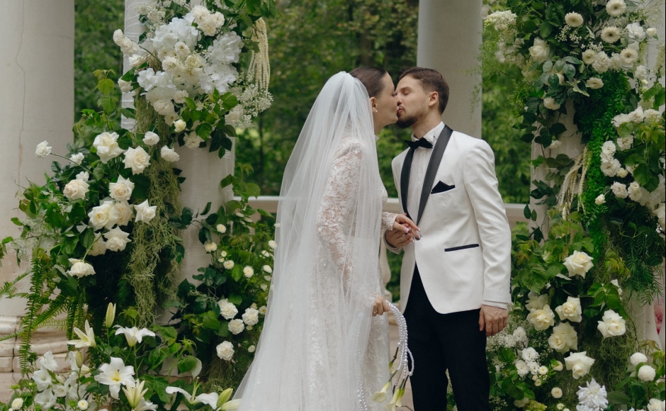 Если в букете невесты преобладают розы или пионы, подбери помаду с похожими розовыми или пыльно-персиковыми нотами. А при акценте на глаза (стрелки, дымка, объемные ресницы) — лучше выбрать спокойный нюдовый тон, чтобы не перегружать образ.