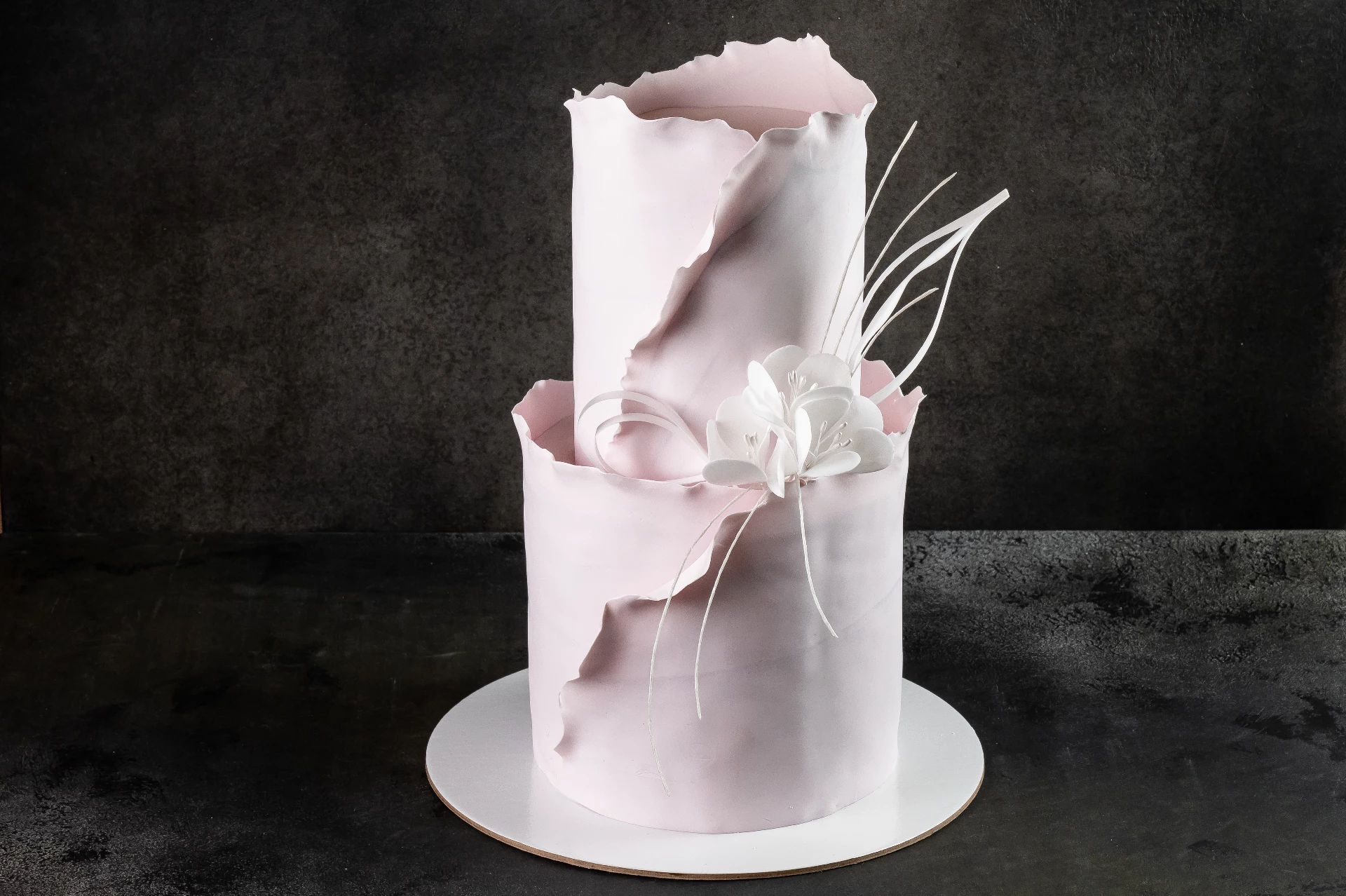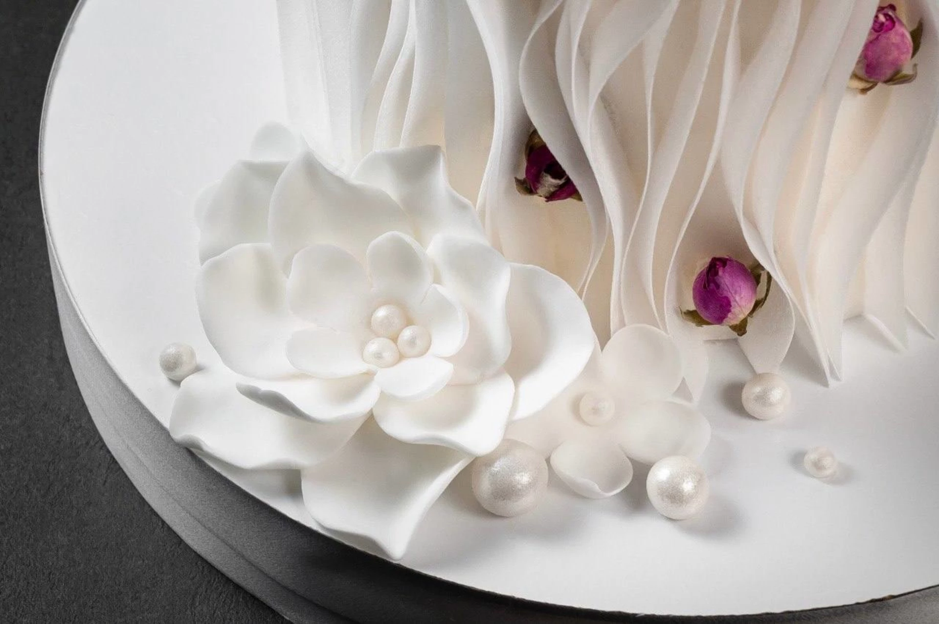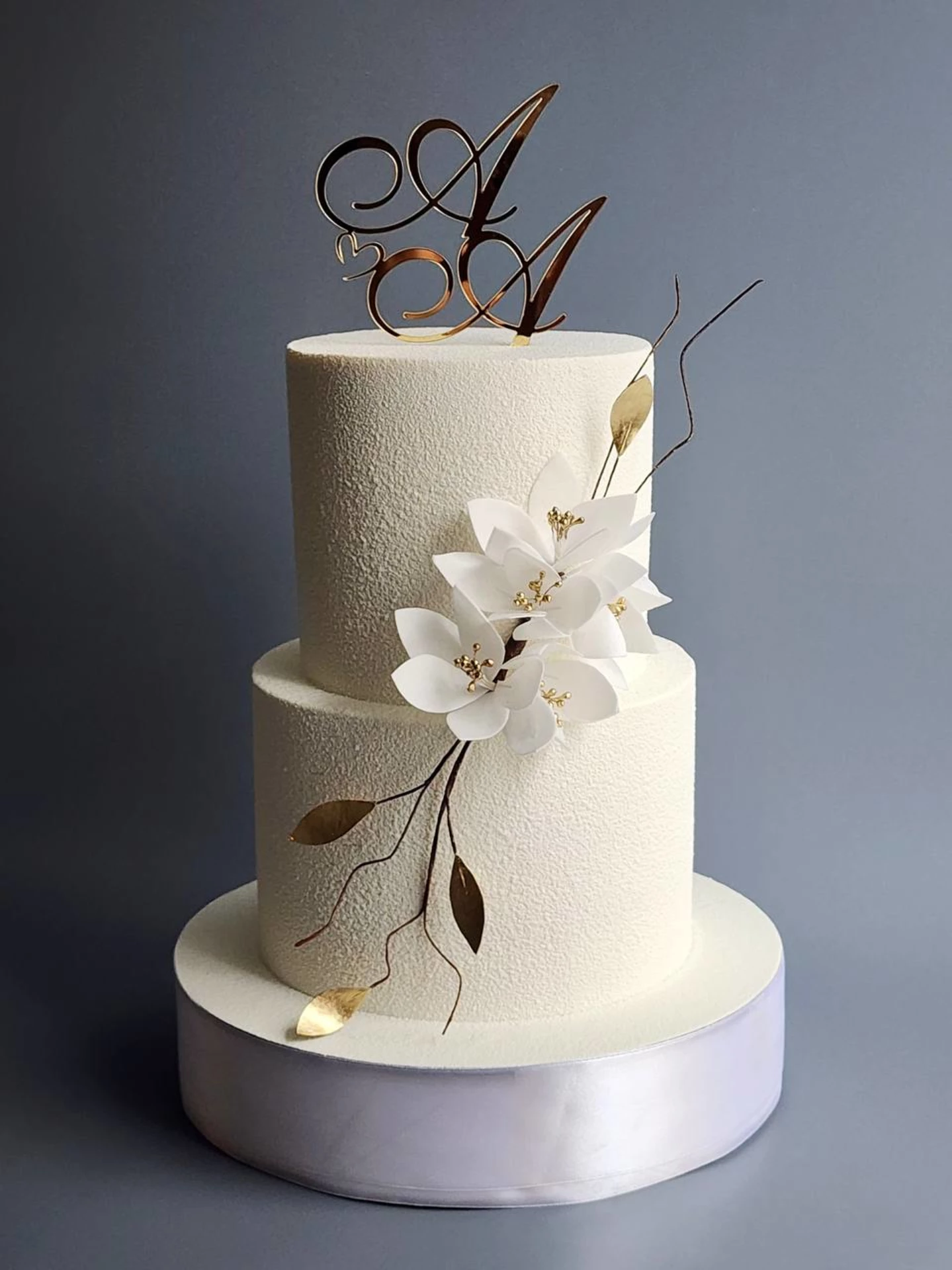 Мы боялись, что комбинат это стандартные «розы из крема», но нет. Сделали стильный нюдовый дизайн с минималистичным декором (согласовали по фото).