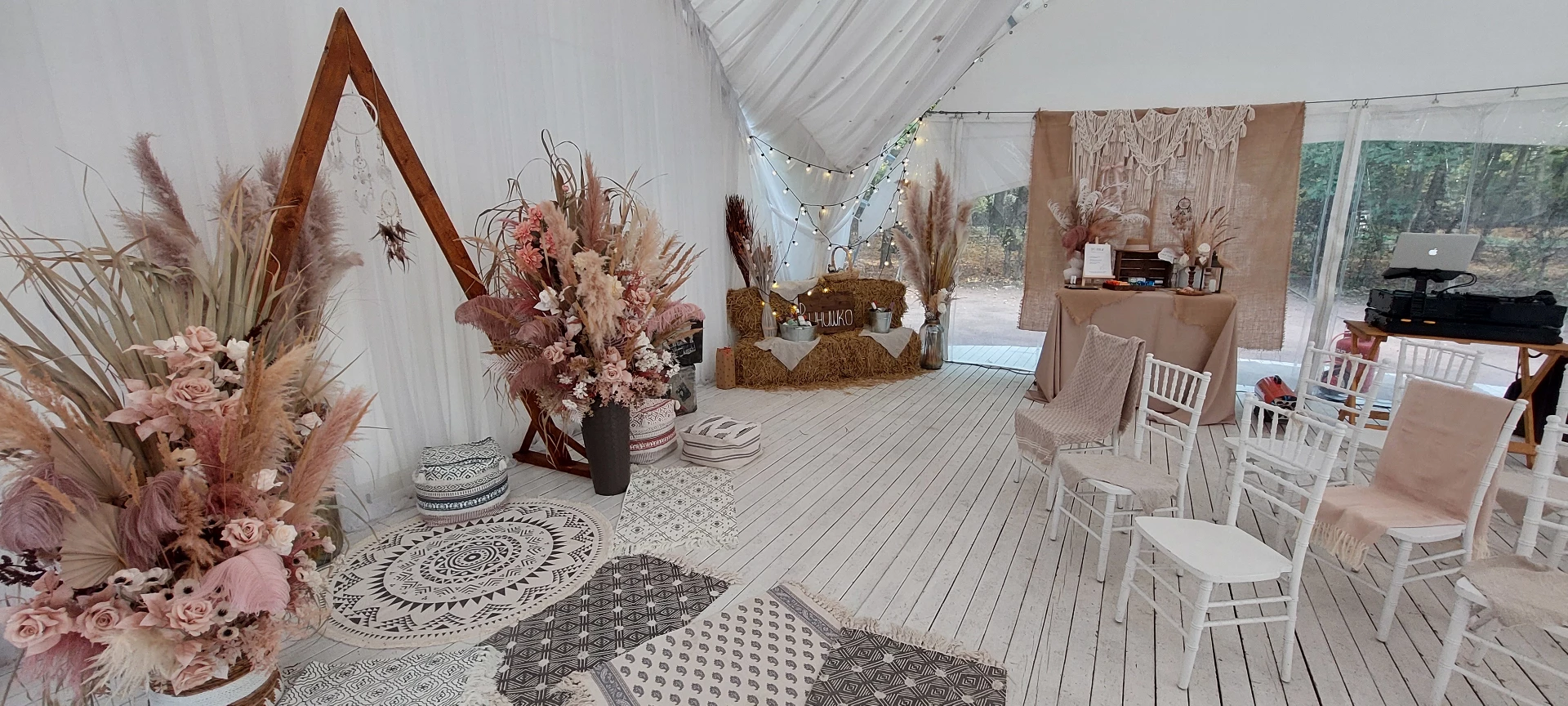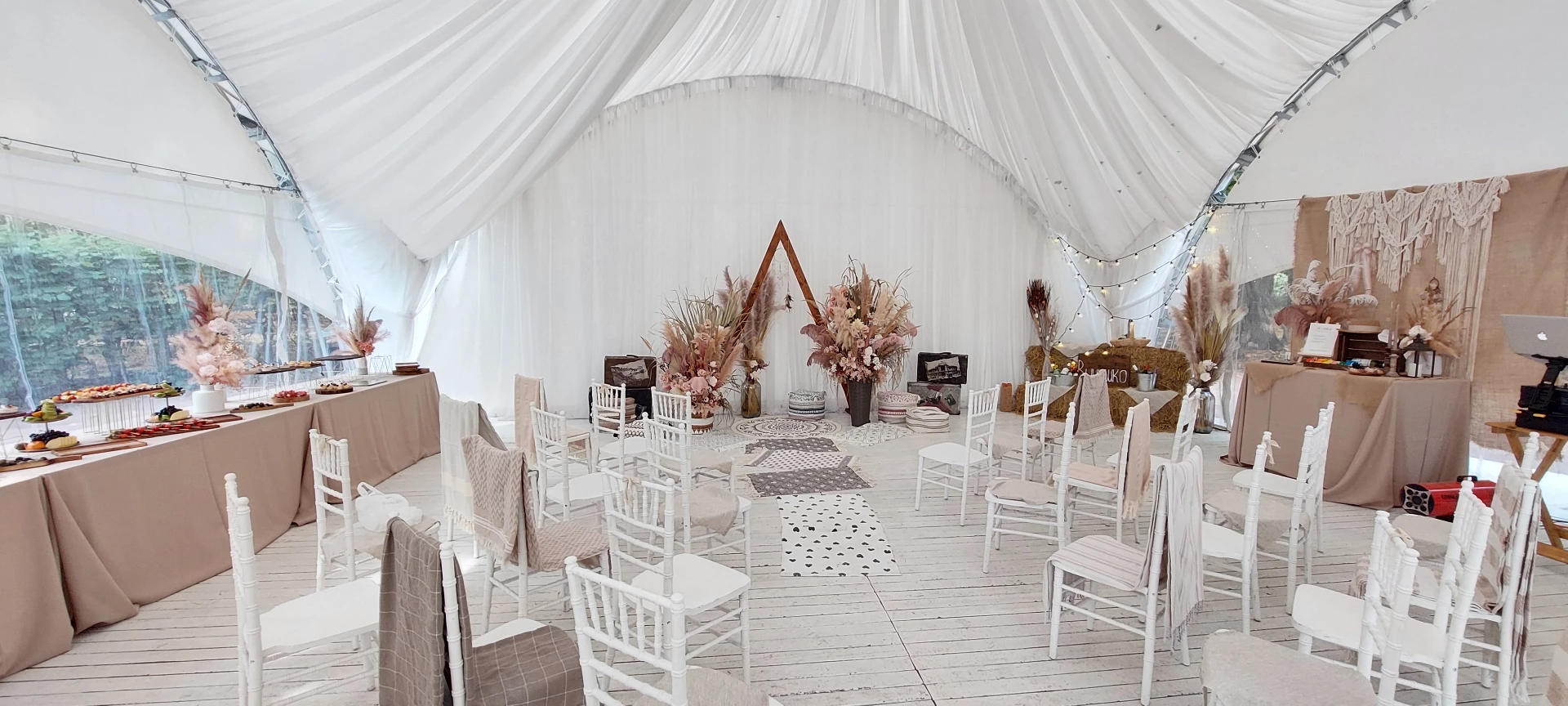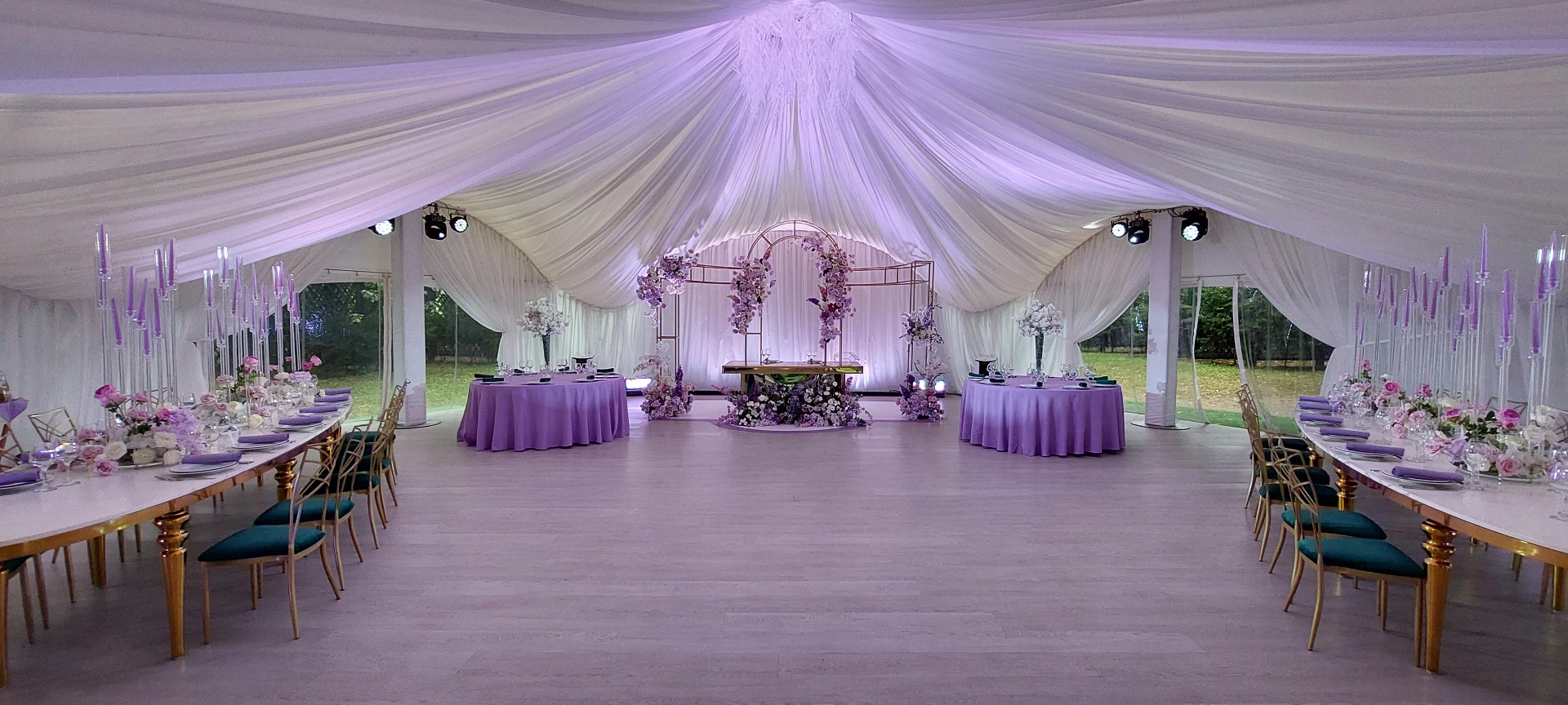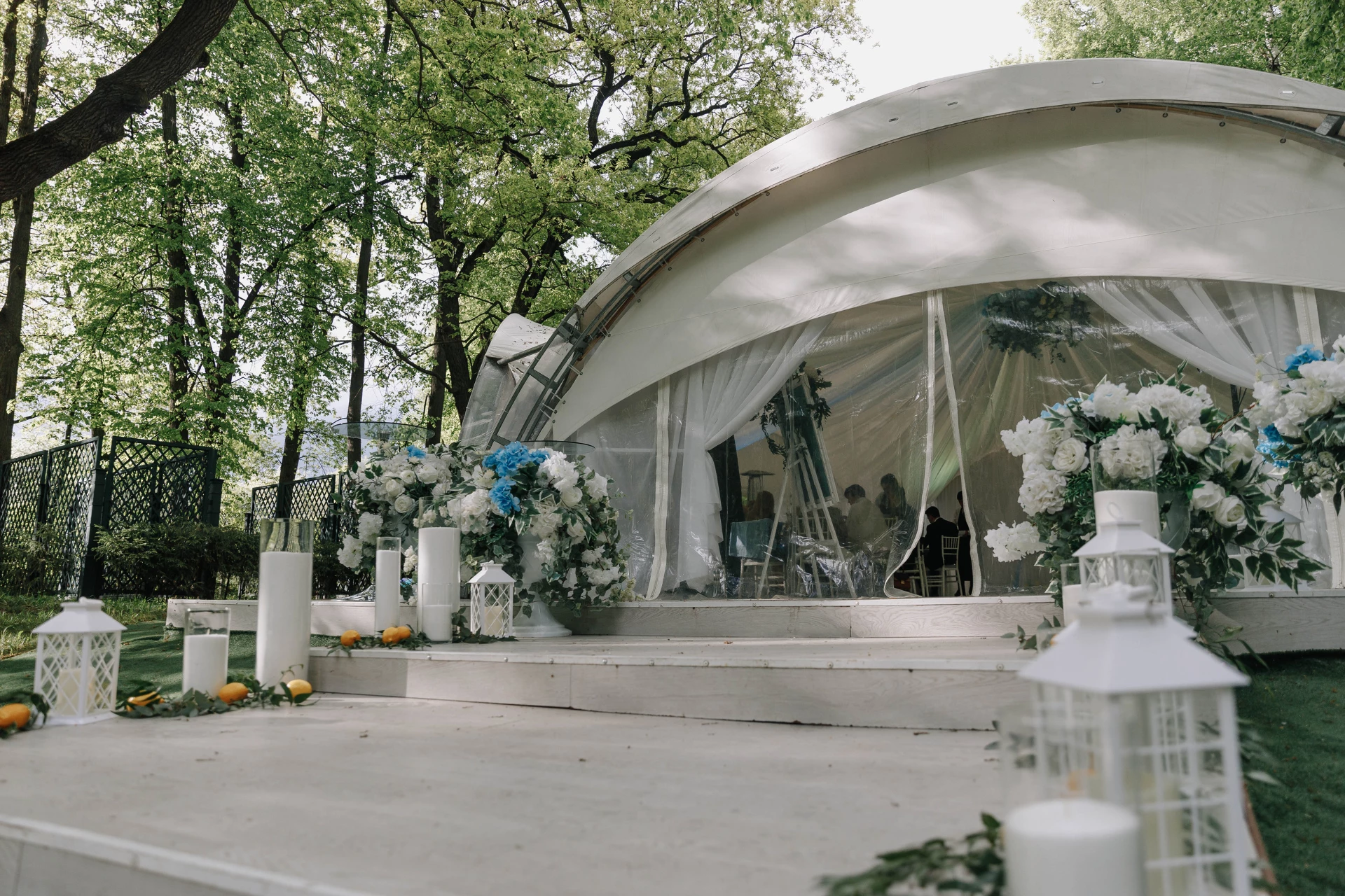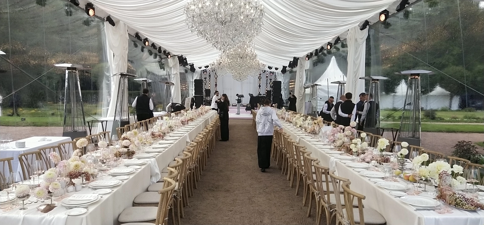 Свадьба проходила в шатре с видом на дворец. Безумно красивый шатёр, все в тканях, в белом цвете, воздушное нежное, огромная зелёная территория, все было чудесно и вкусно! Спасибо огромное