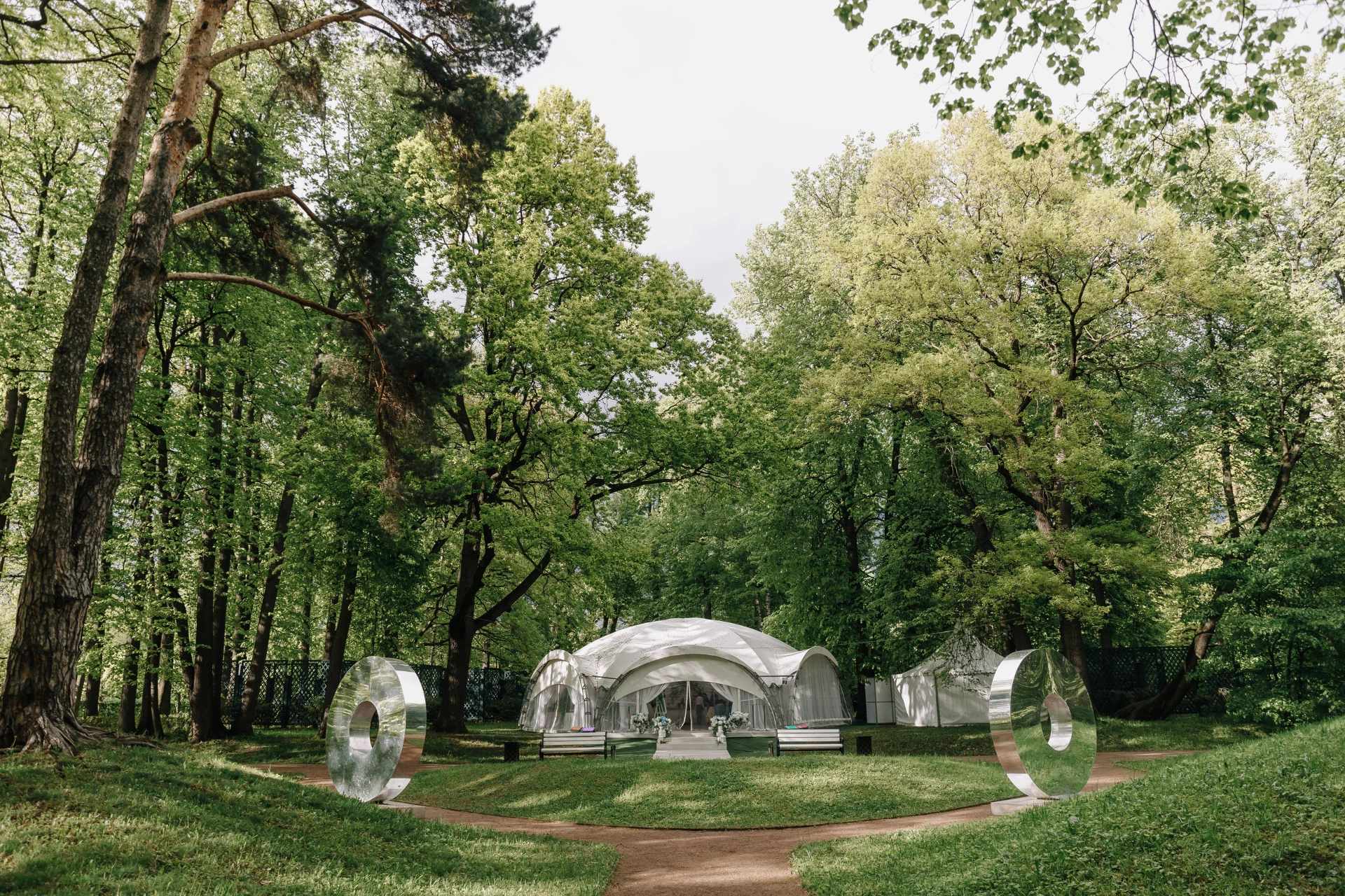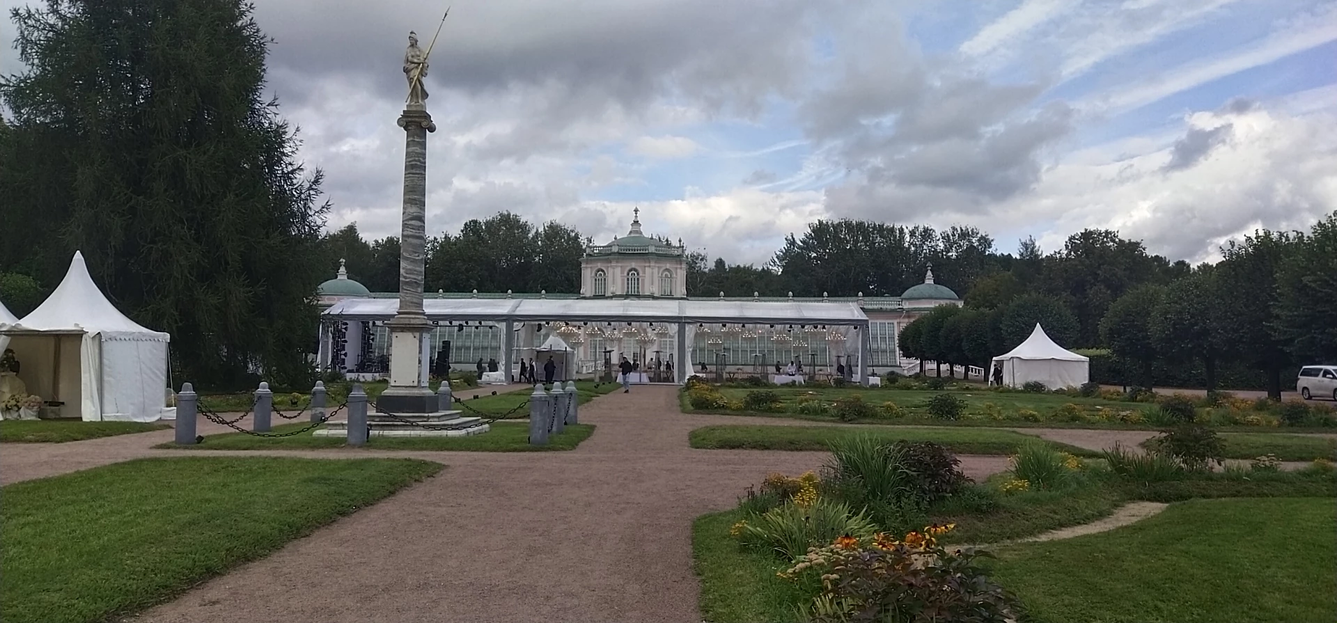 Шатер у большой каменной оранжереи