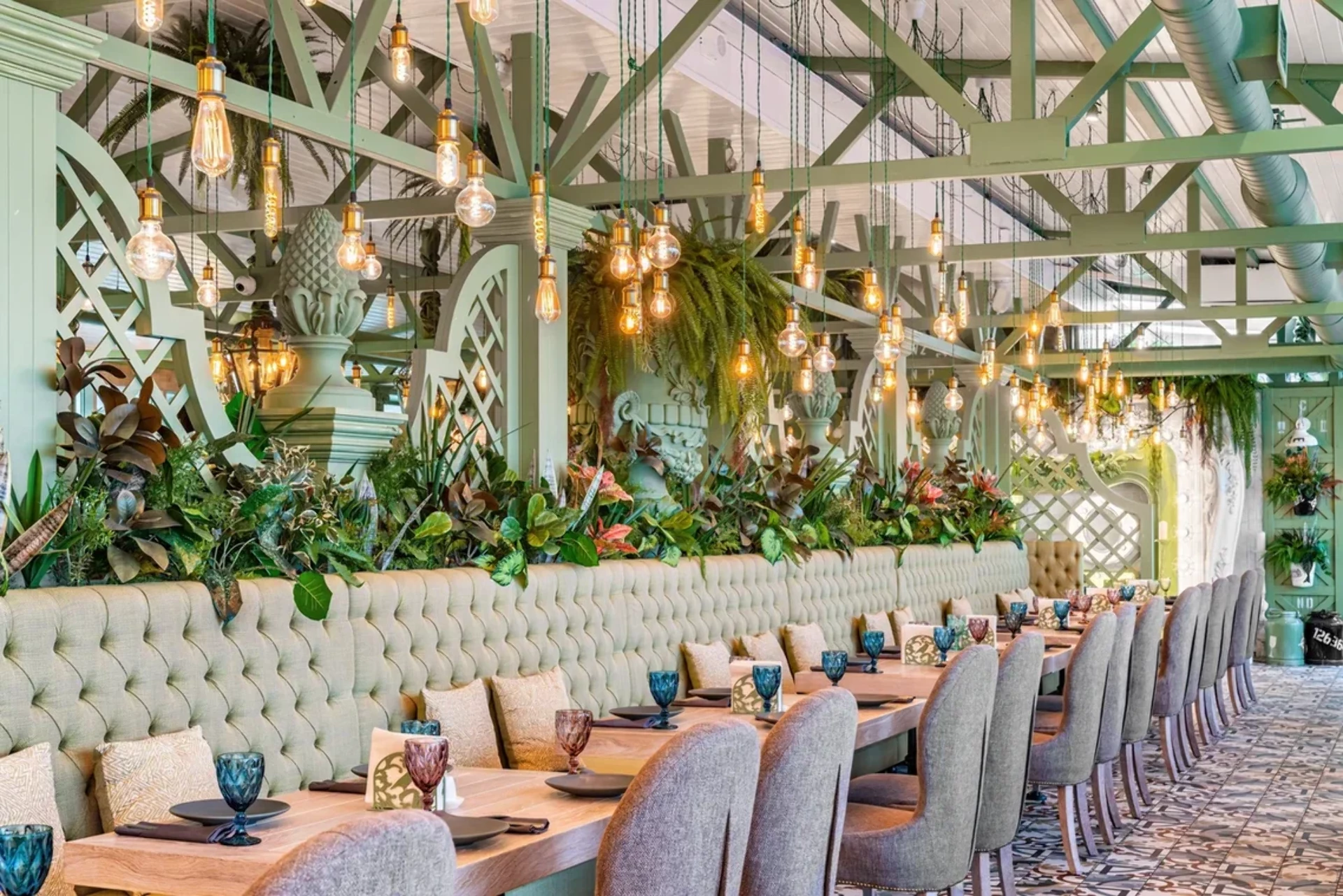 Эстетикика интерьера позволяет отметить здесь какое-нибудь радостное событие, что мы и сделали дружной компанией. В то же самое время, открытой зоне можно приятно проводить время за коктельчиком, получая солнечные ванны, а можно приехать с семьёй перекусить. Великолепная кухня, меню на любой вкус, оформление блюд пробуждает аппетит!!