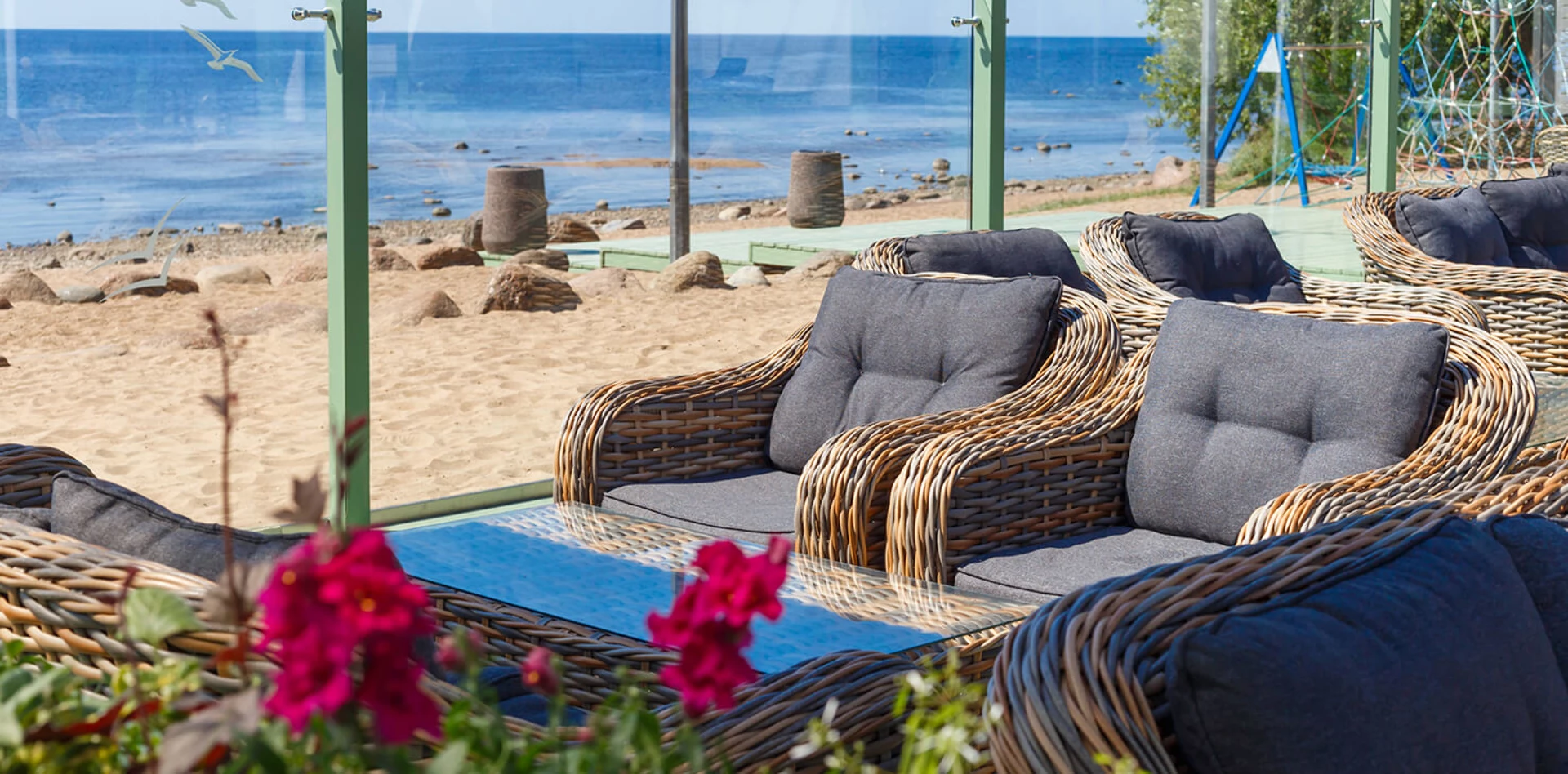 Роскошный ресторан, уютный вид на финский, благоустроенный выход к побережью.