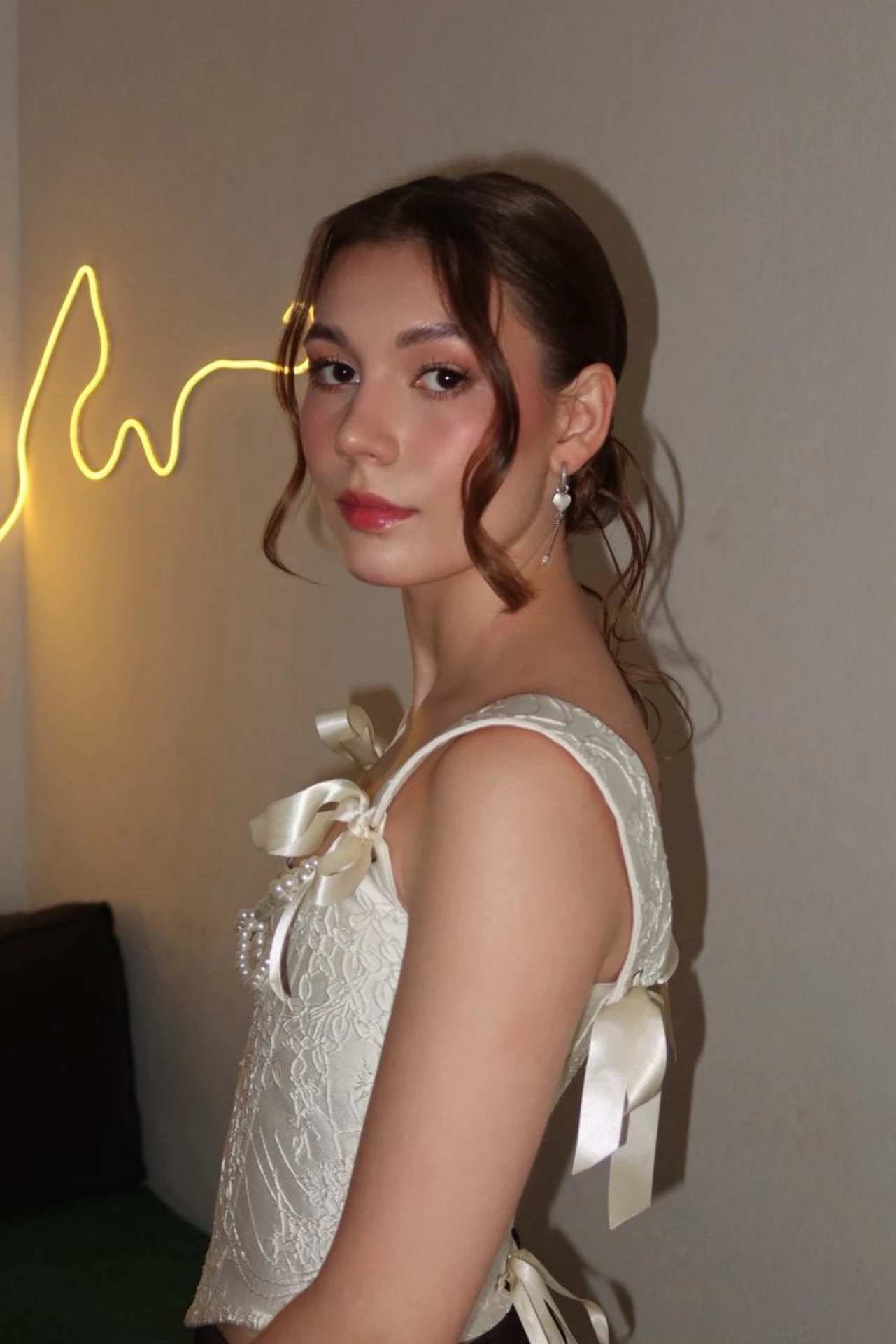 Макияж получился безупречным: лёгкий, сияющий, кожа будто светилась изнутри, но без жирного блеска. Глаза — выразительные, губы — нежные, и всё это выглядело невероятно естественно. Локоны продержались до самого вечера, несмотря на ветер, танцы и объятия!