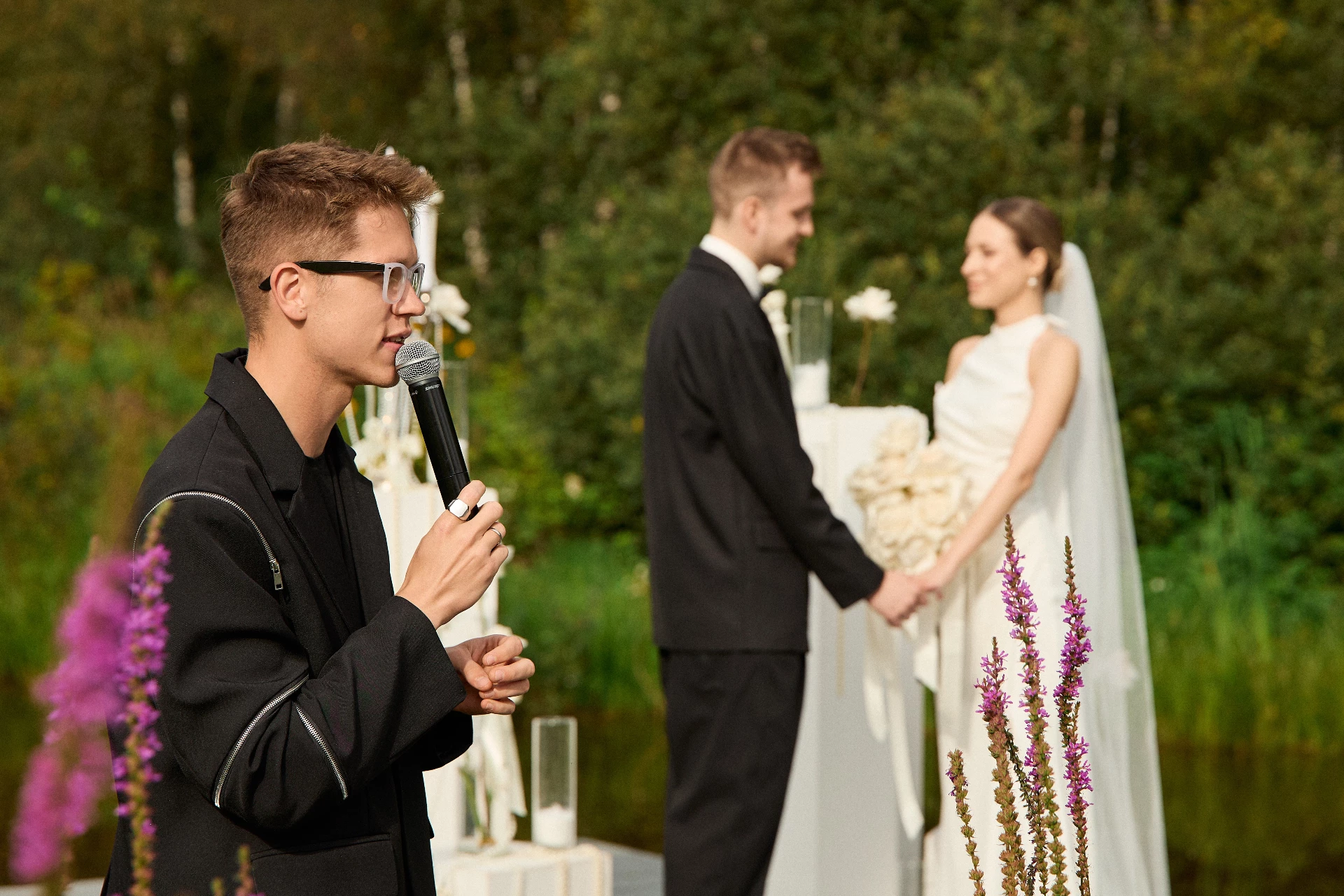 Мы, как и многие, немного переживали, как пройдёт наш свадебный день, но с первой встречи Максим зарядил нас уверенностью и положительной энергией. Он поймал наш вайб и создал потрясающую атмосферу — весёлую, тёплую и душевную. Всё было организовано органично, никто не остался в стороне. Он в один момент может тронуть и в то же время рассмешить. Благодаря ему наша свадьба прошла легко и превзошла все наши ожидания. Конечно, мы бы порекомендовали Максима, с ним праздник точно удастся на 1000000/10.