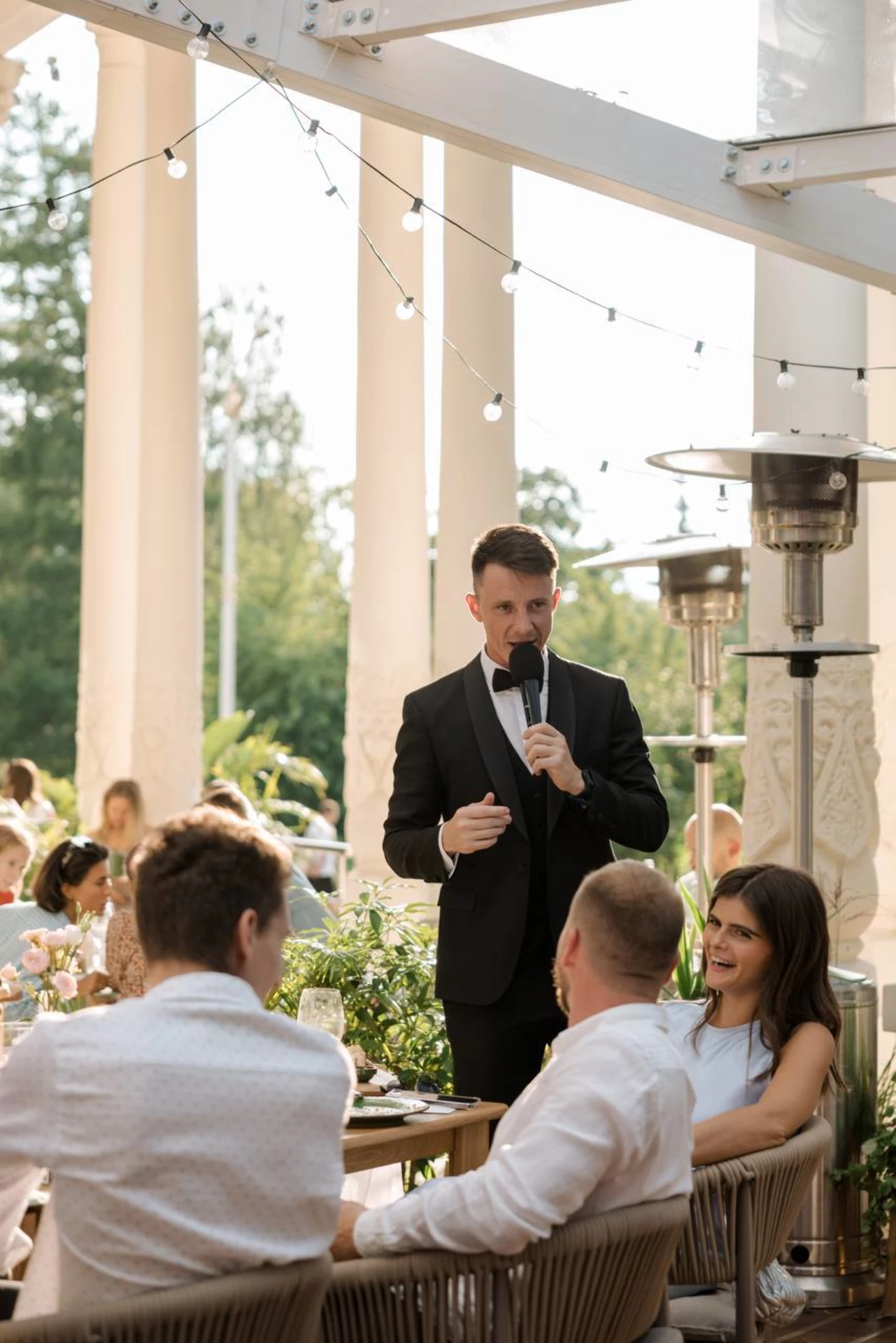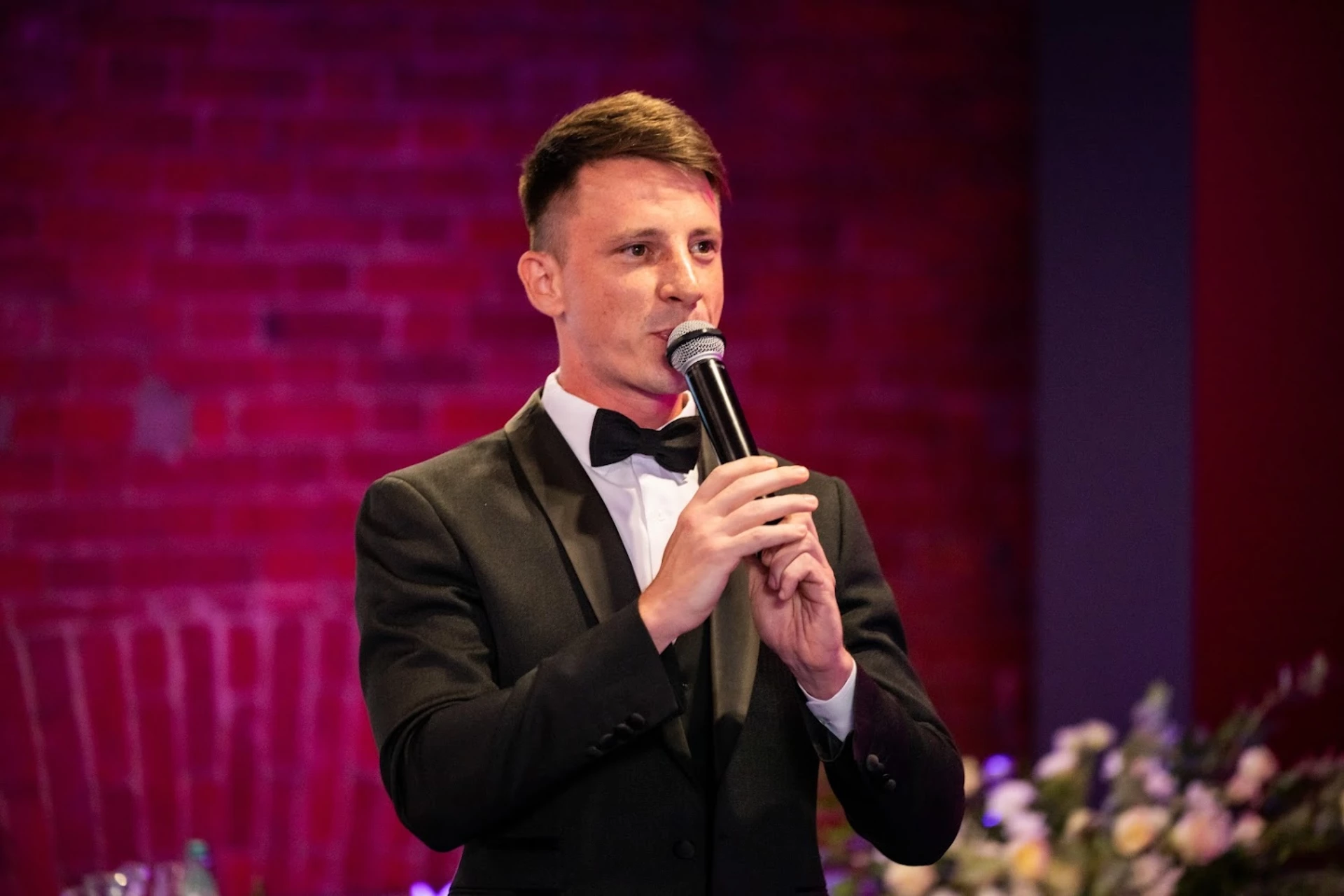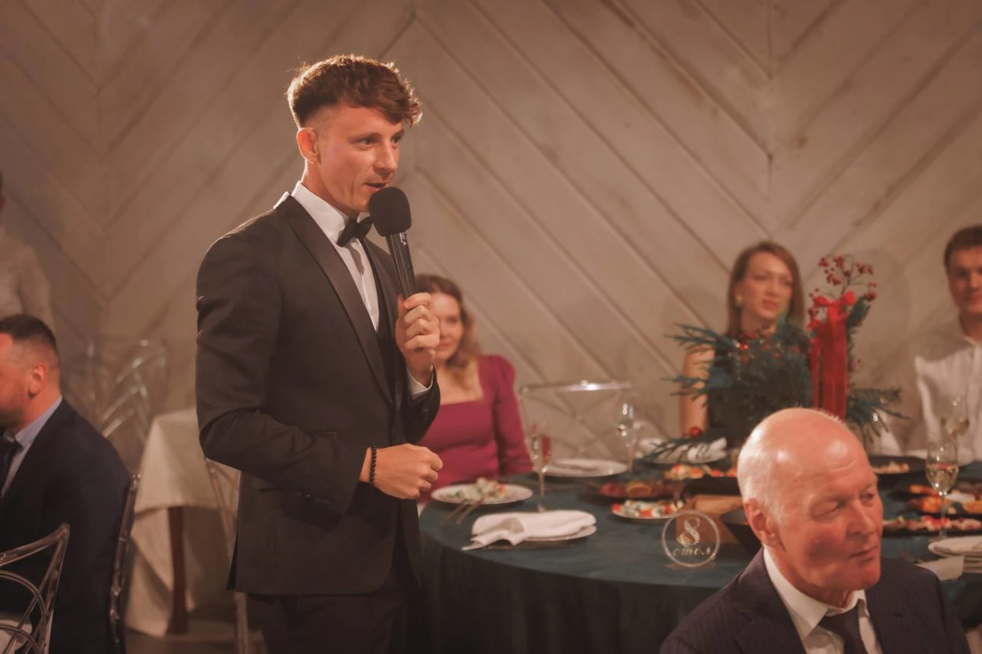 На свадьбе ведущий сразу же завоевал внимание гостей своим обаянием и харизмой. Он умело поддерживал атмосферу веселья, вовлекая всех в игры и конкурсы, которые были как веселыми, так и трогательными. Каждый момент был продуман до мелочей, и мы не могли не улыбаться, наблюдая за тем, как гости смеются и наслаждаются.