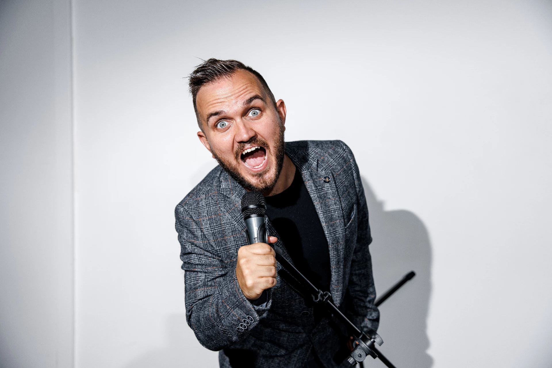 Привет. Я Саша — ведущий мероприятий в стиле “добрый Stand Up!”