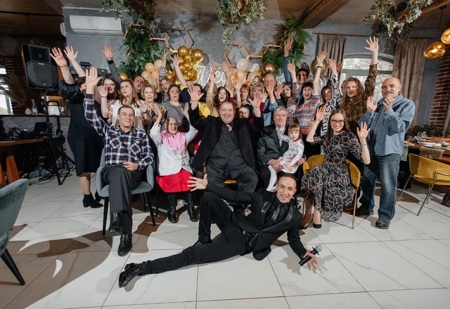 В праздничном вечере участвовали все гости и это сильно порадовало. Конкурсы и флешмобы не оставили равнодушным ни одного из нас. Никто не был обделен вниманием. Особо хочется отметить тактичность в поведении Виталия, очень правильно понимает необходимость своего присутствия, чувствует, когда необходимо остановится, а когда объеденить и развеселить гостей. Это был настоящий праздник, который останется в памяти на долго!!!