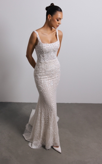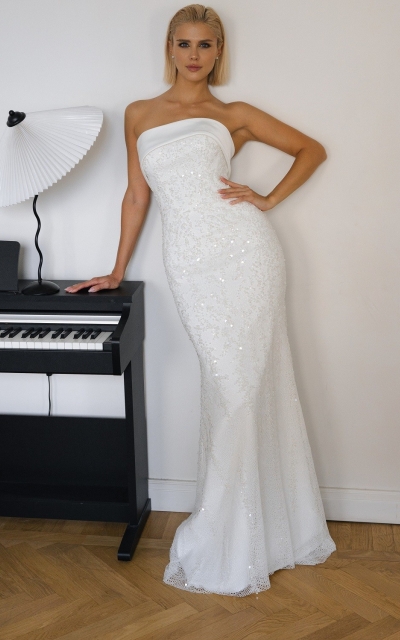 - Рыбка. Облегающий лиф с расклешенной юбкой, которая имитирует хвост русалки. Расширение начинается на уровне колен.