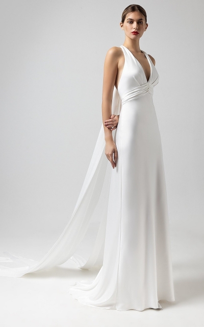 - Греческие. Талия завышена, а лиф не плотно облегает фигуру, давая полную свободу движениям. Эти первые два варианта подходят невестам с любыми типами фигуры.
