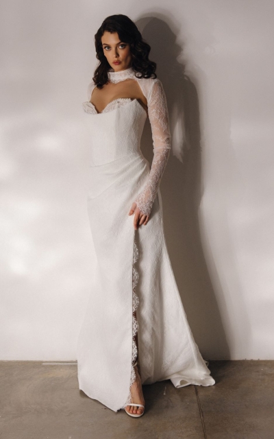 - Ампир. Талия завышается искусственно, что зрительно удлиняет ноги. В платьях для невесты стиля ампир внимание приковано к лифу.