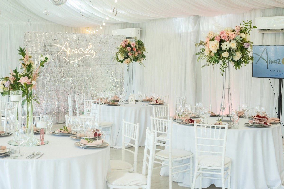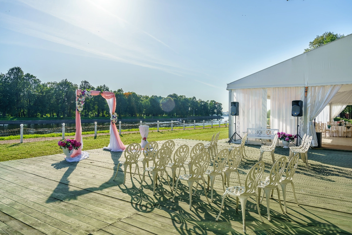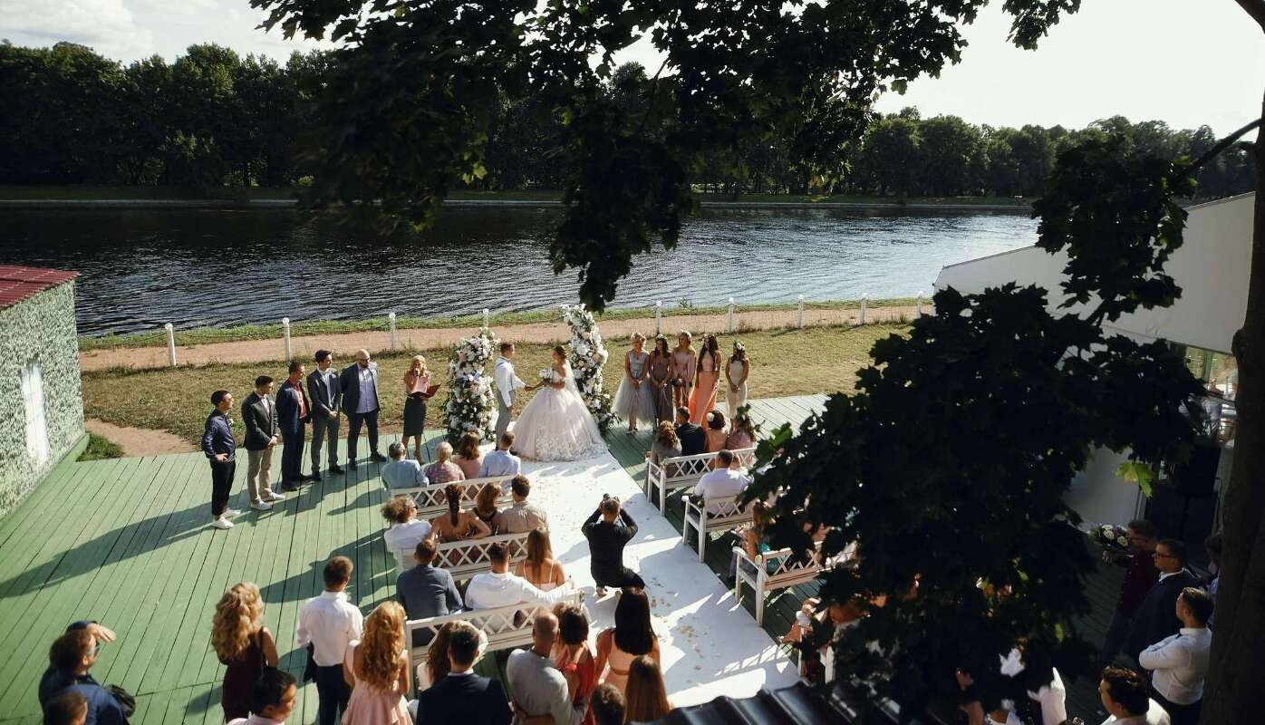 После того как предложение было сделано и, получено заветное "ДА", мы с невестой начали поиск идеального места для торжества. На этом сайте мы увидели множество вариантов, но именно ресторан "Айвазовский" отвечал всем нашим требованиям: красивое место с видом на реку и парк, белоснежный шатер, закрытая территория, возможность проведения выездной регистрации и еще много плюсов, которые мы для себя отметили.